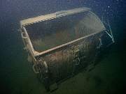 Im See kann man heute noch die Reste des Tagebaus und andere "Atraktionen"
