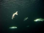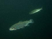 Direkt nach dem Abtauchen auf der linken Seite unter dem Jetty viele Regenbogenforellen