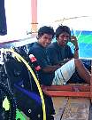 den Tauchgängen draußen oder kamen zurück zum Resort.
