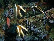 Viele Muränen, Fledermausfische, Drachenkopf, schöne Annemonen