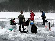 mit dem Gerödel auf dem Rücken etwa 300 m bis 400 m zum Eisloch.